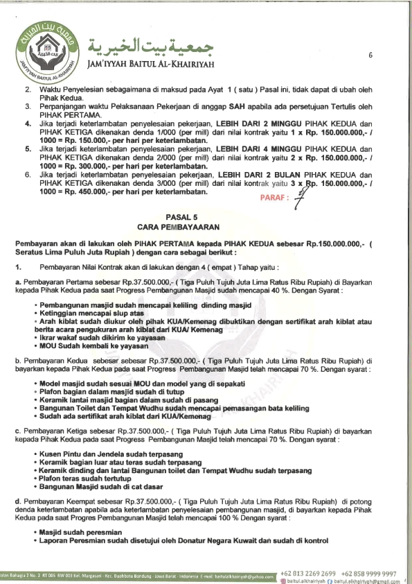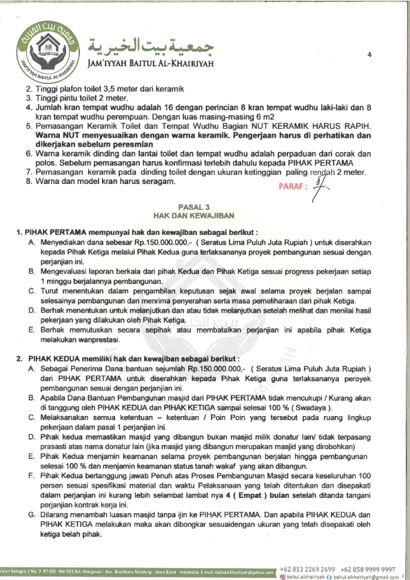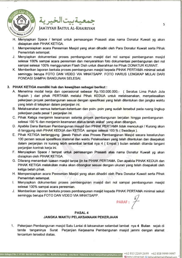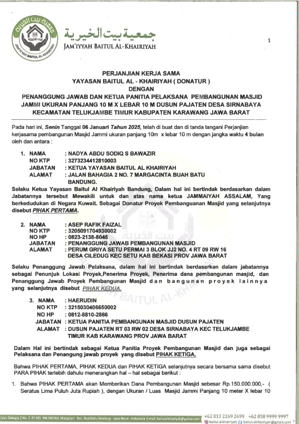 Untuk mewujudkan pembangunan ini, kami membutuhkan dana sebesar Rp150 juta. Kami sudah memulai persiapan awal dengan membuat perjanjian kerja sama antara Yayasan Baitul Al Khairiyah dengan pihak kami agar pelaksanaan pembangunan berjalan dengan baik dan transparan.